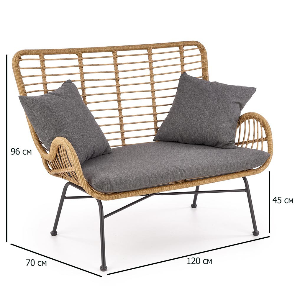 Стильна софа з м'яким сидінням та подушками Ikaro XL від польської компанії Halmar – ідеальний предмет меблів для людей, які цінують функціональні та елегантні рішення. Крісло виготовлене зі штучного ротанга в натуральному кольорі. Сидіння і подушки обтягнуті високоякісною тканиною сірого кольору. Профільовані ніжки виготовлені зі сталі та пофарбовані порошковою фарбою у чорний колір. Завдяки універсальному дизайну софа підійде як до класичних, так і до сучасних аранжувань, збагативши декор вашого будинку, саду, тераси або балкона. Для її виробництва використовувалися матеріали найвищої якості. Така софа стане чудовою пропозицією для тих, хто шукає міцні та надійні меблі, які прослужать довгі роки.