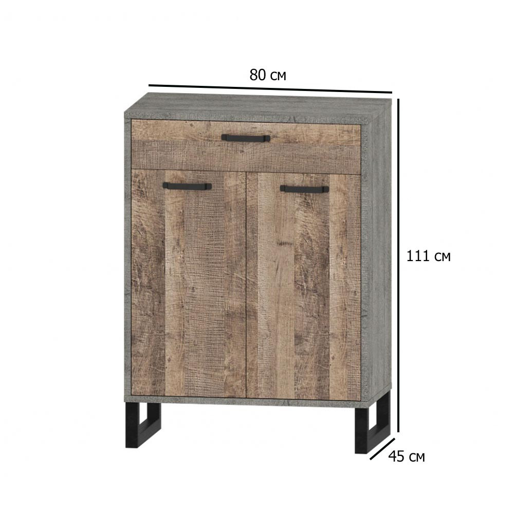 Комод для речей у передпокій Сокме Барі 2Д1Ш 80х111х45 см вудкон з фасадом дуб гранж пісочний на чорних ніжках