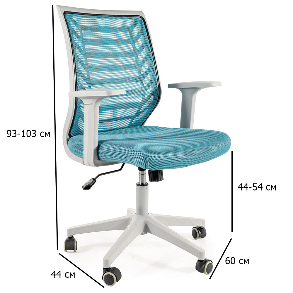 Комп'ютерний стілець із підлокітниками Сигнал К'ю-320 блакитний з мембранної тканини та пластику