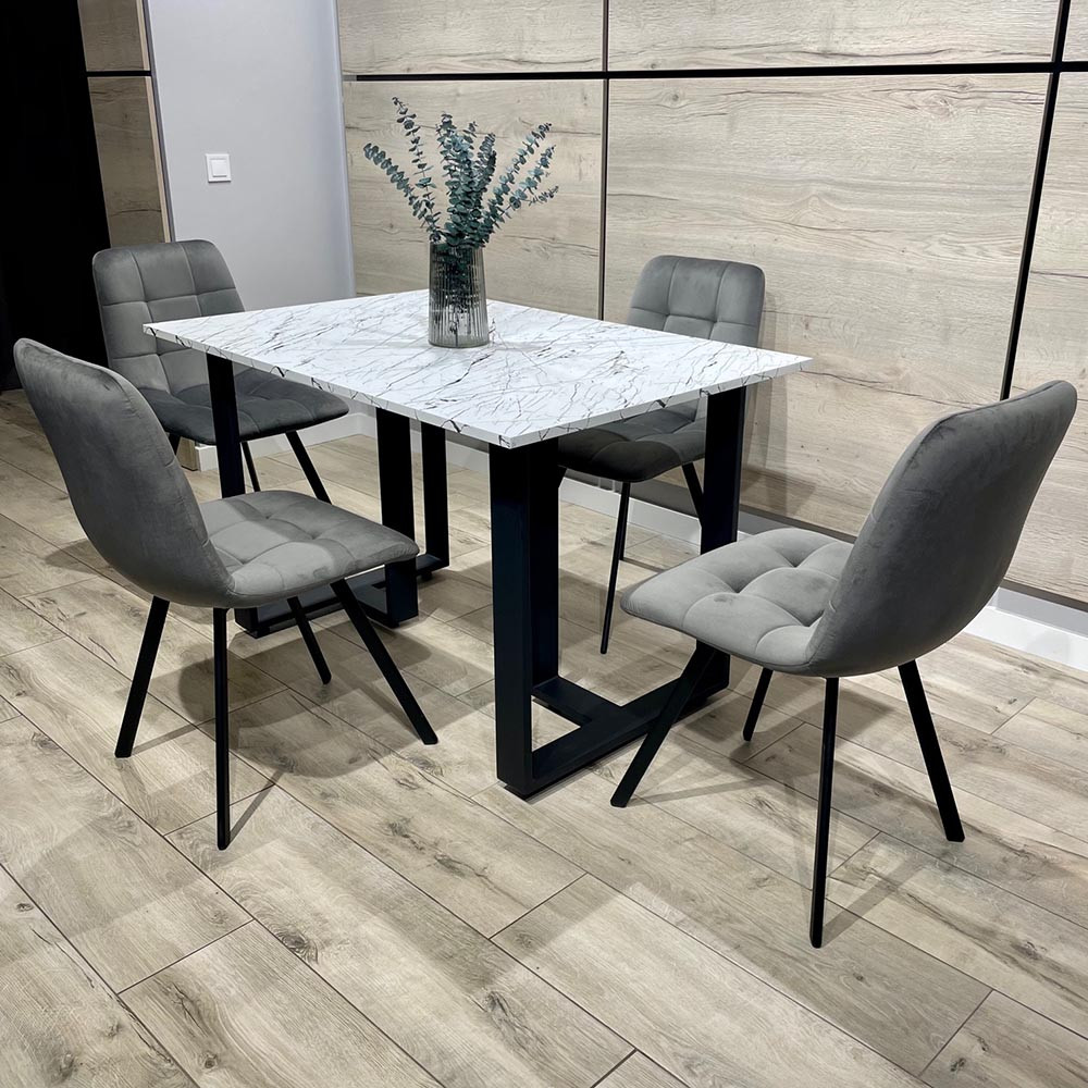 Обідній стіл під білий мармур Tenerife 170х90 см з матовою стільницею на чорних ніжках для кухні