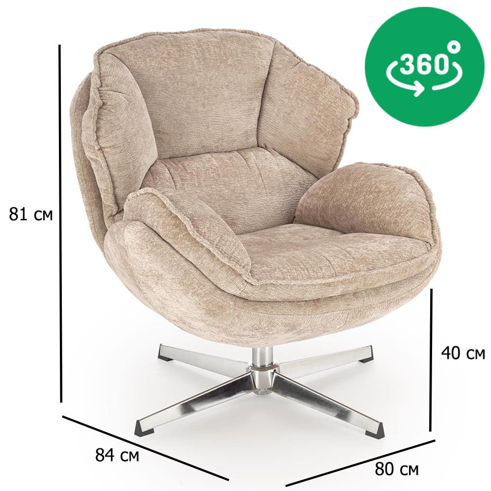 Поворотне крісло Халмар Гвідо бежеве з тканини та хромованої сталі