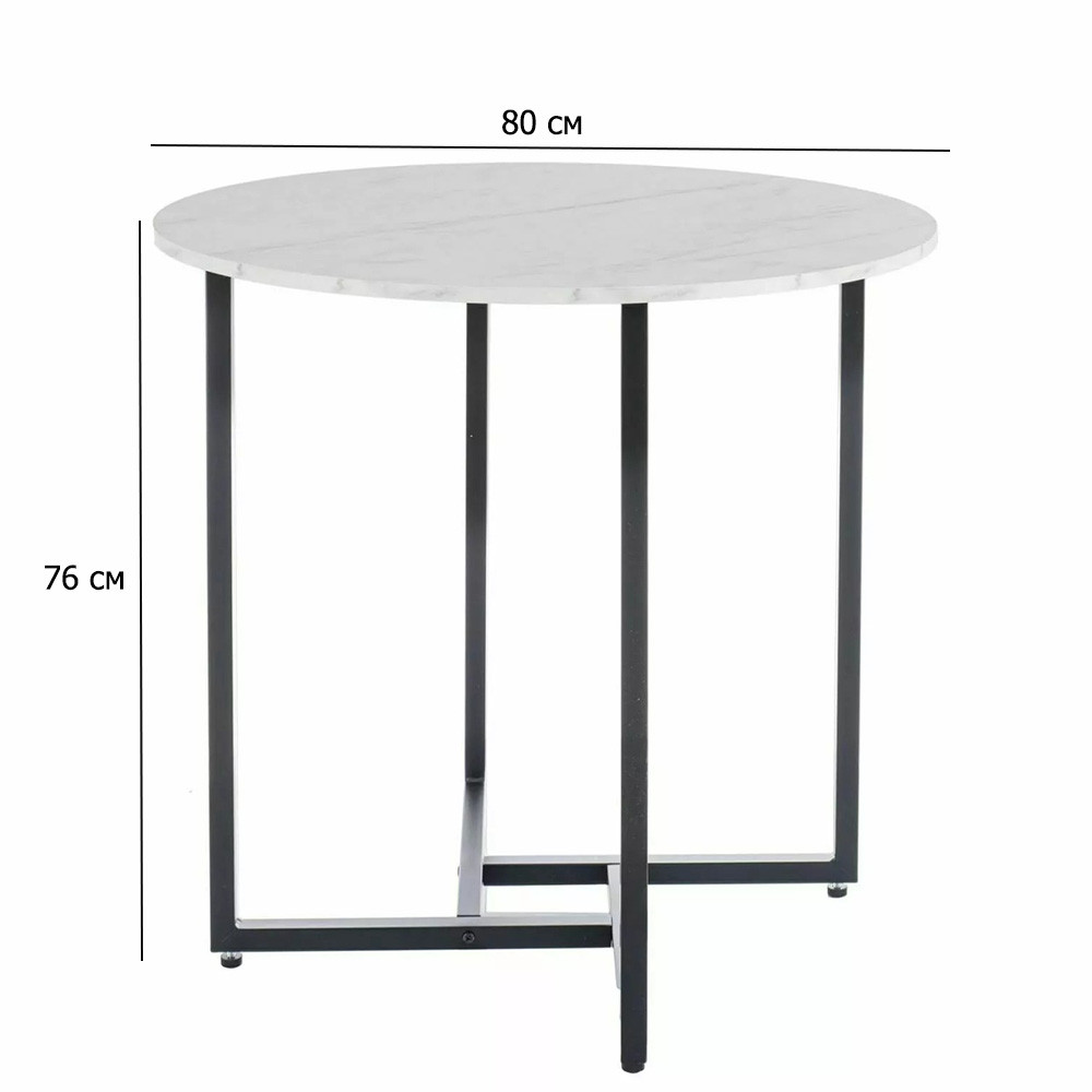 -13%Круглий стіл під білий мармур Alto II 80 см на чорних металевих ножах для маленької кухні