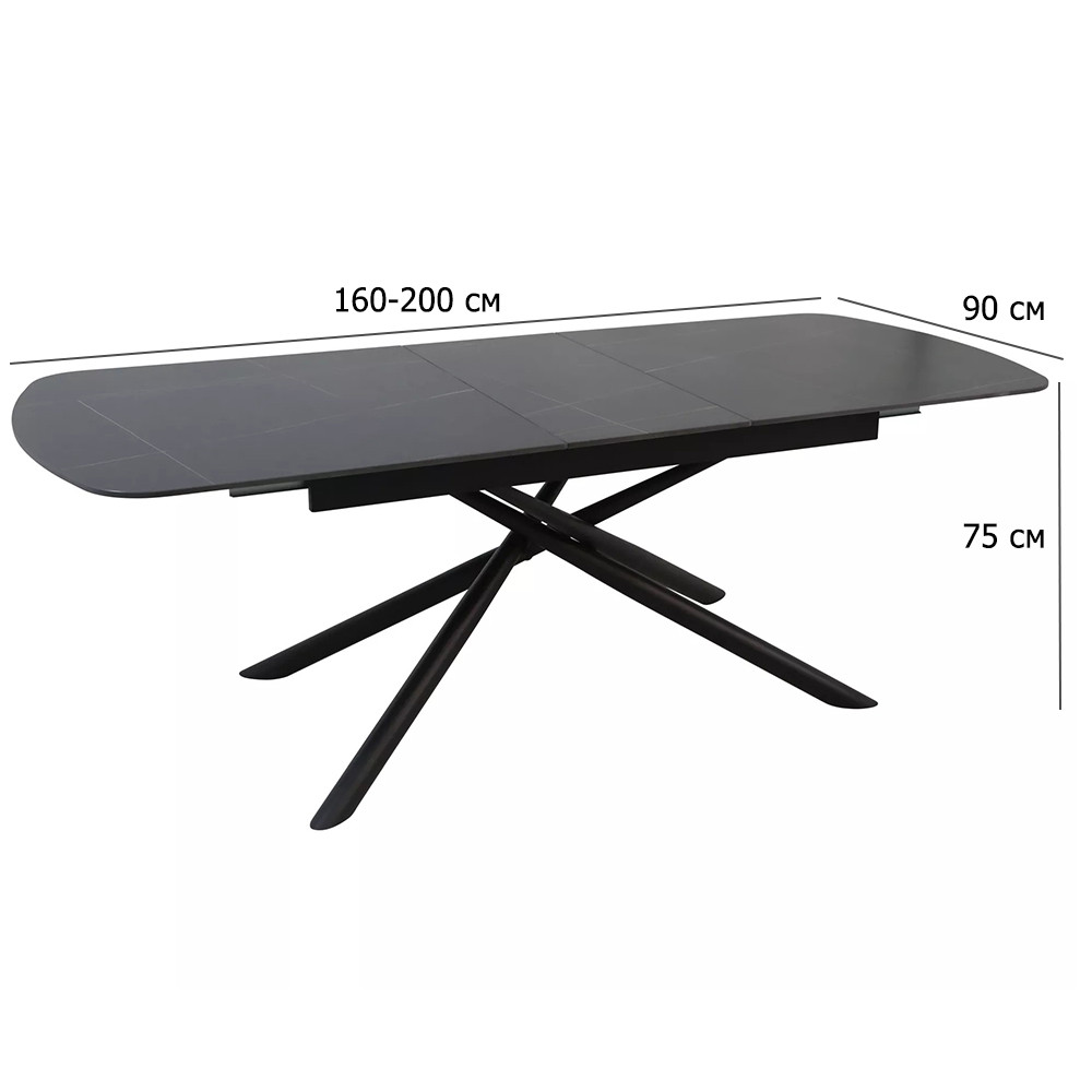 -13%Розкладний обідній стіл Vector 160-200х90 см чорний з керамічною стільницею на металевих ніжках